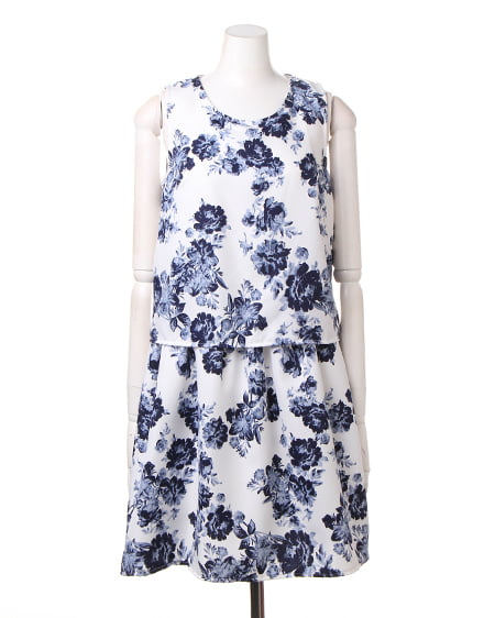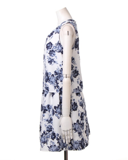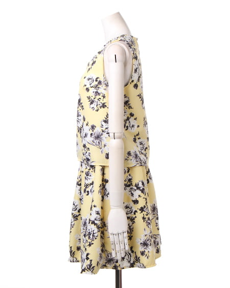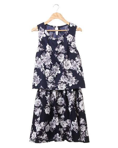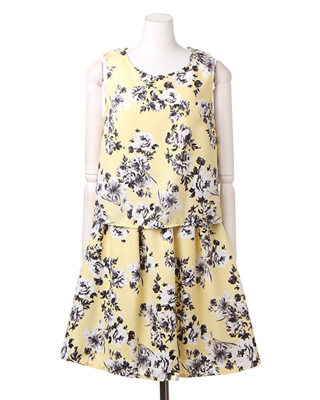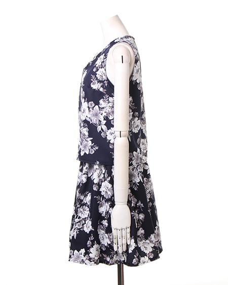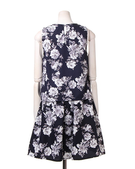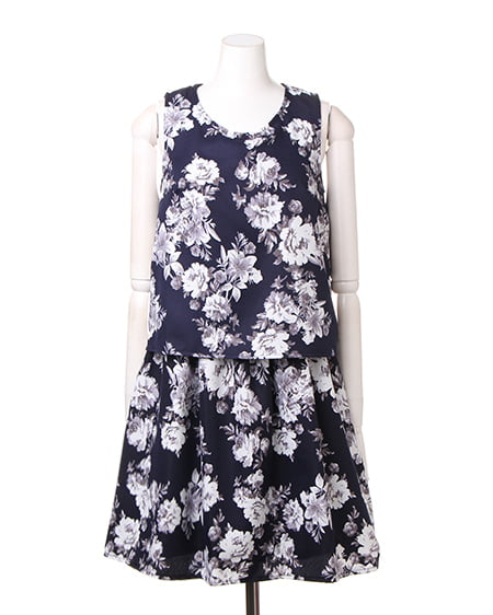 上品なフラワープリントが魅力のアイテム。セットアップのようなデザインが特徴です。1枚でさらりと着られるのでデイリーユースに最適。