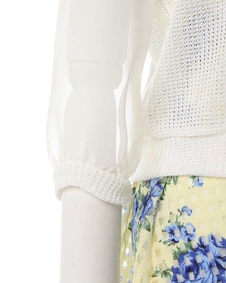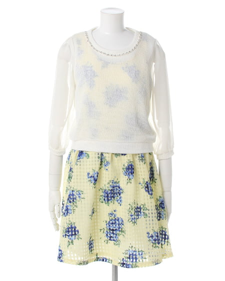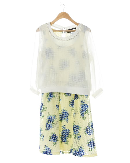 ワンピースとトップスをセットにした好感度抜群な一着。花柄を全面にあしらったフェミニンなワンピースはノースリーブシルエットで着こなしやすいアイテム。シンプルなフィット&フレアシルエットで女性らしい印象に着られます。透け感のあるトップスはライトな質感で春気分を盛り上げてくれます。それぞれ単品使いも可能で着回し力も抜群です。レギュラーより長めの着丈です。