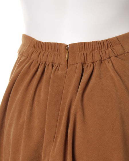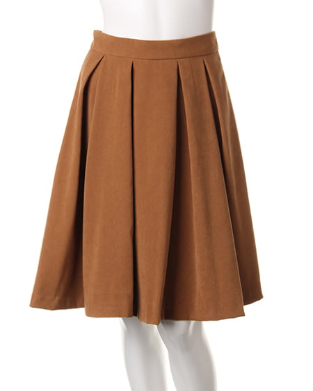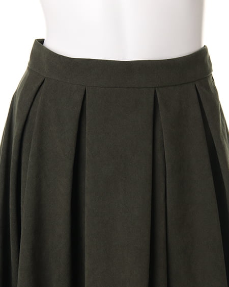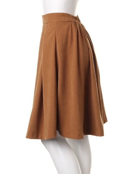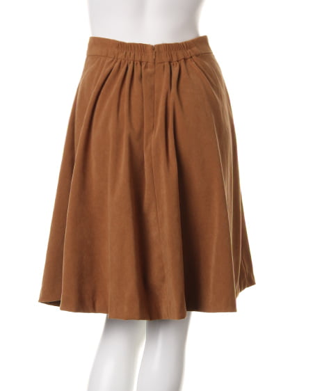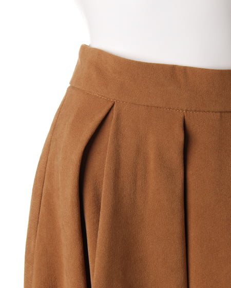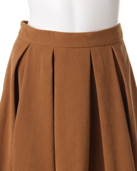 柔らかくしっとりとした風合いの秋冬マストなフェイクスエードタックフレアスカート。肌馴染みが良く女性らしいシルエットはソフトに体型カバーもしてくれます。マットで暖かな表面感と上品な丈感の慎ましい雰囲気が秋冬にぴったり。トレンドのチェック柄シャツやハイネックニットと合わせれば最旬なスタイルの完成です。