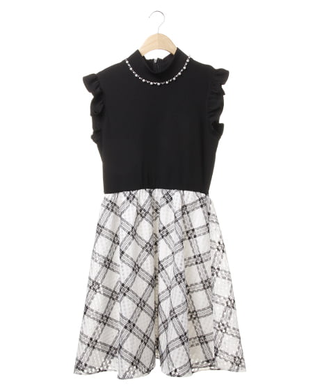 ハイネックが旬なスタイルにしてくれるドッキングワンピース。動きやすい伸縮性のあるフリル袖トップスと異なるチェック柄を組み合せたワンピースは、首周りにビジュー装飾を施しアクセサリーなしでも1枚でスタイルが完成する便利アイテムです。ライトな透け感のあるシアーチェック柄はトレンド感満点。大人デザインのダブルチェックで、あなたの魅力を倍増させてくれること間違いなし◎。レギュラー丈より長めの着丈です。