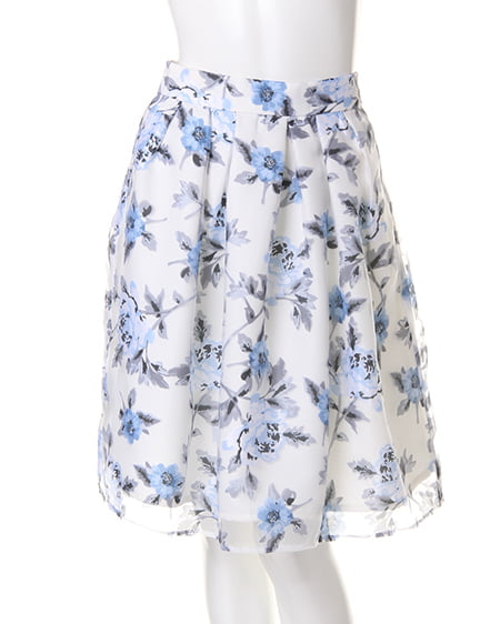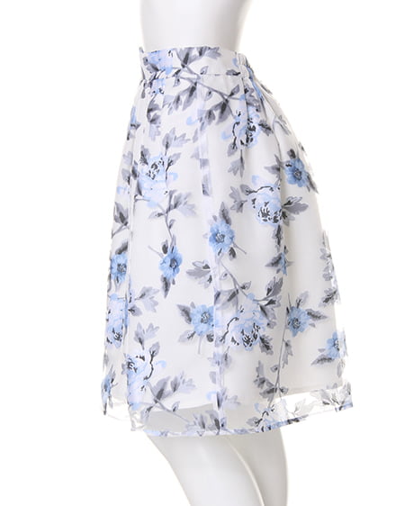 【1161-312273 花柄オーガンジータックフレア/スカート】