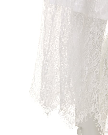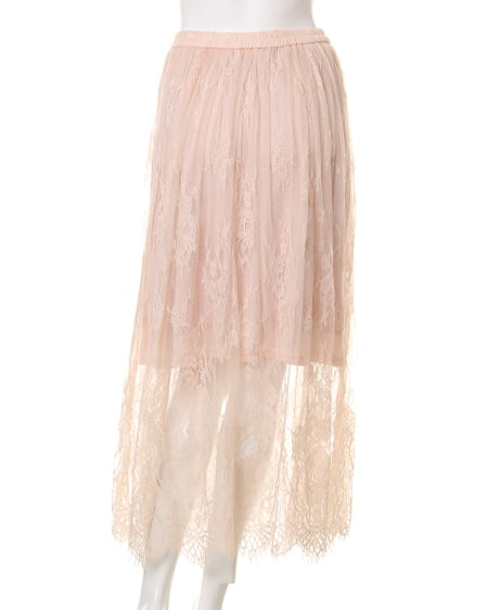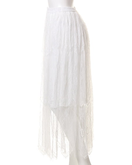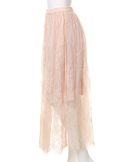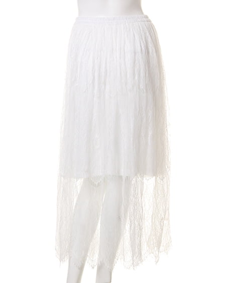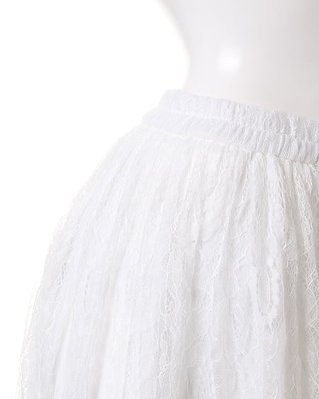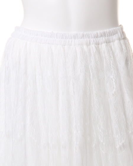 繊細で上品なレースを贅沢に使用したマキシスカート。ギャザーがたっぷりと入ってリラックスムード満点の1枚です。綺麗な落ち感と広がり過ぎない絶妙なシルエットが甘さの中に大人っぽさを加え、落ち着いた印象に。透け感がある裾のデザインが涼しげな雰囲気を演出してくれます。ウエストゴムでストレスフリーな穿き心地も嬉しいポイント。足元はスニーカーやスポーツサンダルなどを合わせると今年らしいこなれた雰囲気に。1着あるだけでスタイリング幅が広がるオススメのアイテムです。
