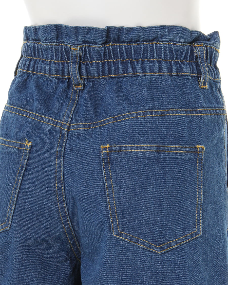 深めの股上とフリルをあしらったハイウエストデザインが着こなしやすいショートデニム。ベーシックなデザインで普段使いに重宝するアイテムです。裾部分はロールアップで太ももをすっきり見せてくれる効果も◎。バックウエストはゴムになっているので脱ぎ穿きもしやすく、リラックスした着心地です。ベルトでウエストマークしてシャツインスタイルで着こなすのもおすすめ。