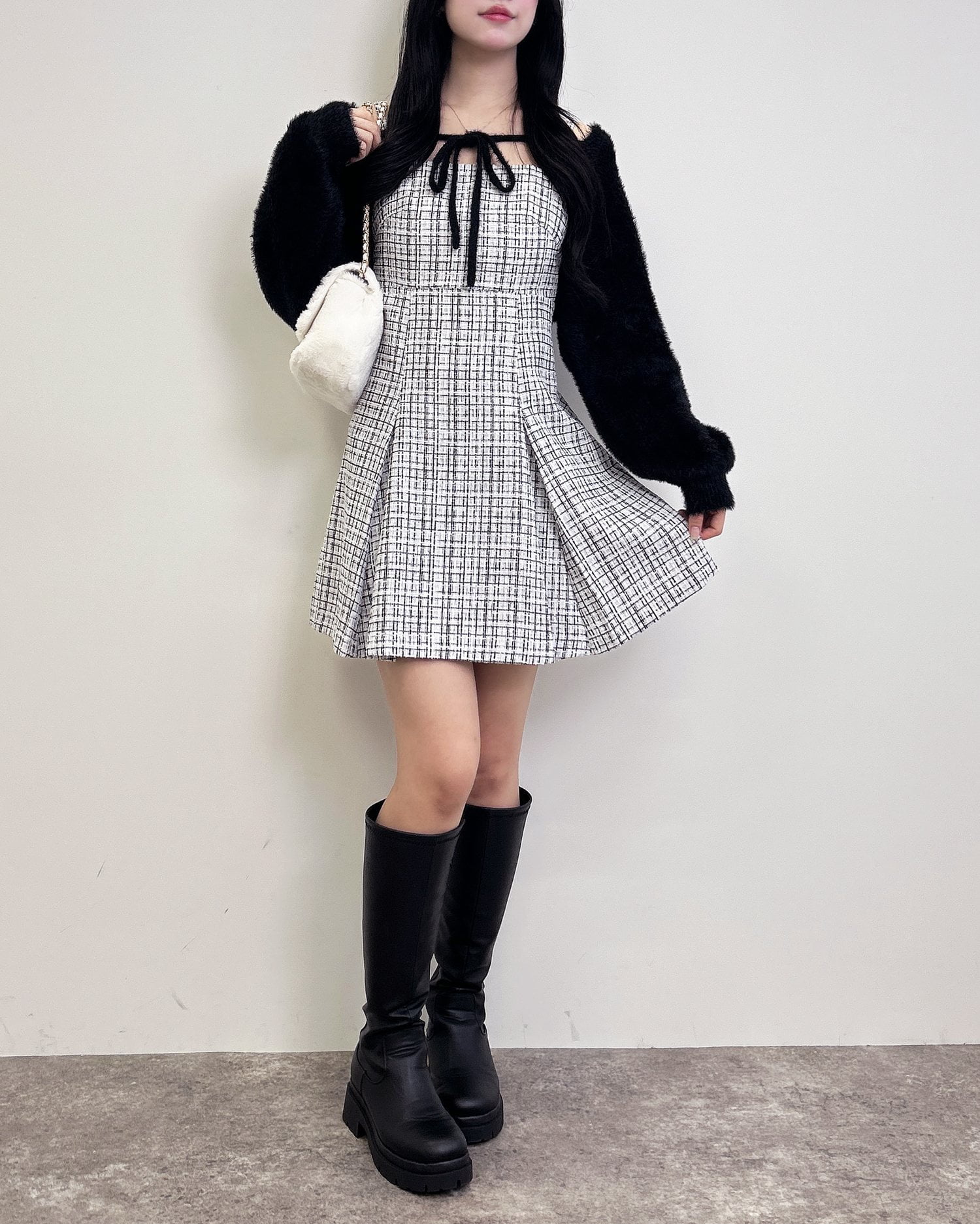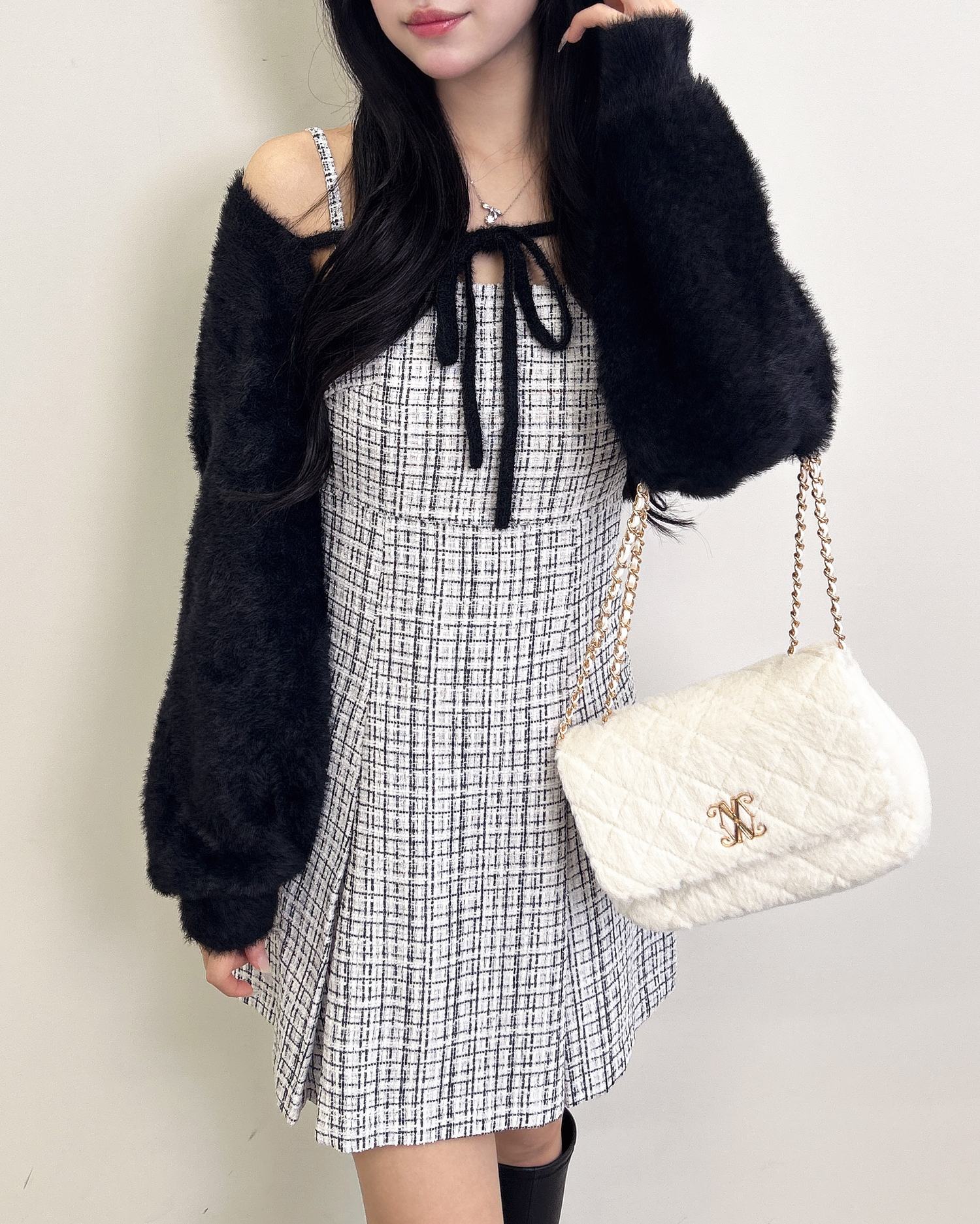 【冬らしいツイード生地×トレンドのミニキャミワンピが登場♡】