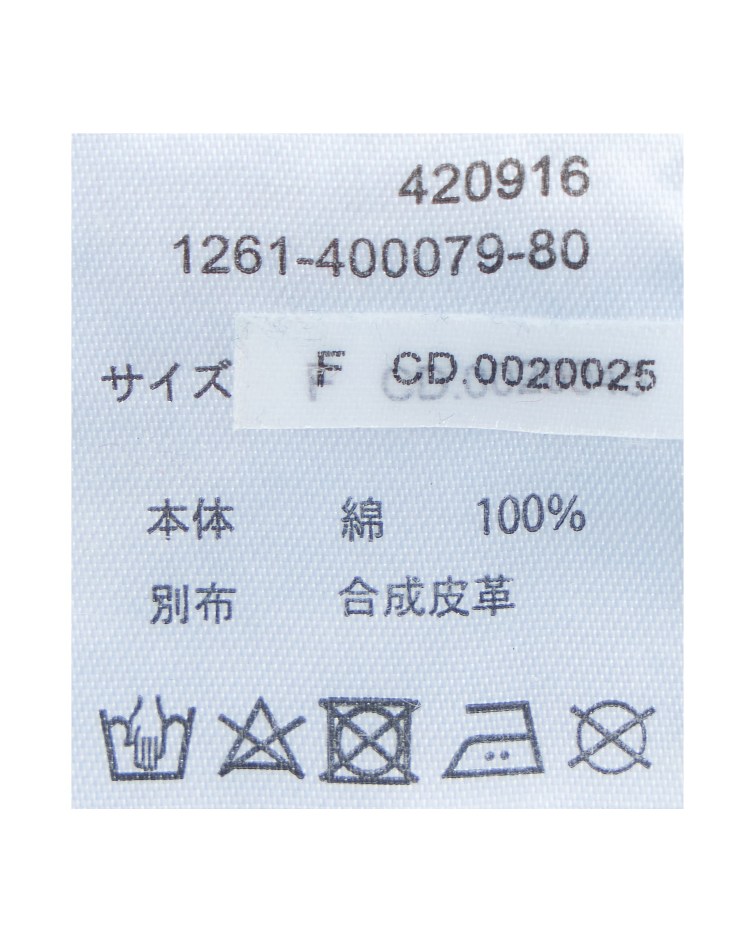 原産国 中国 本体 綿100% 別布 合成皮革