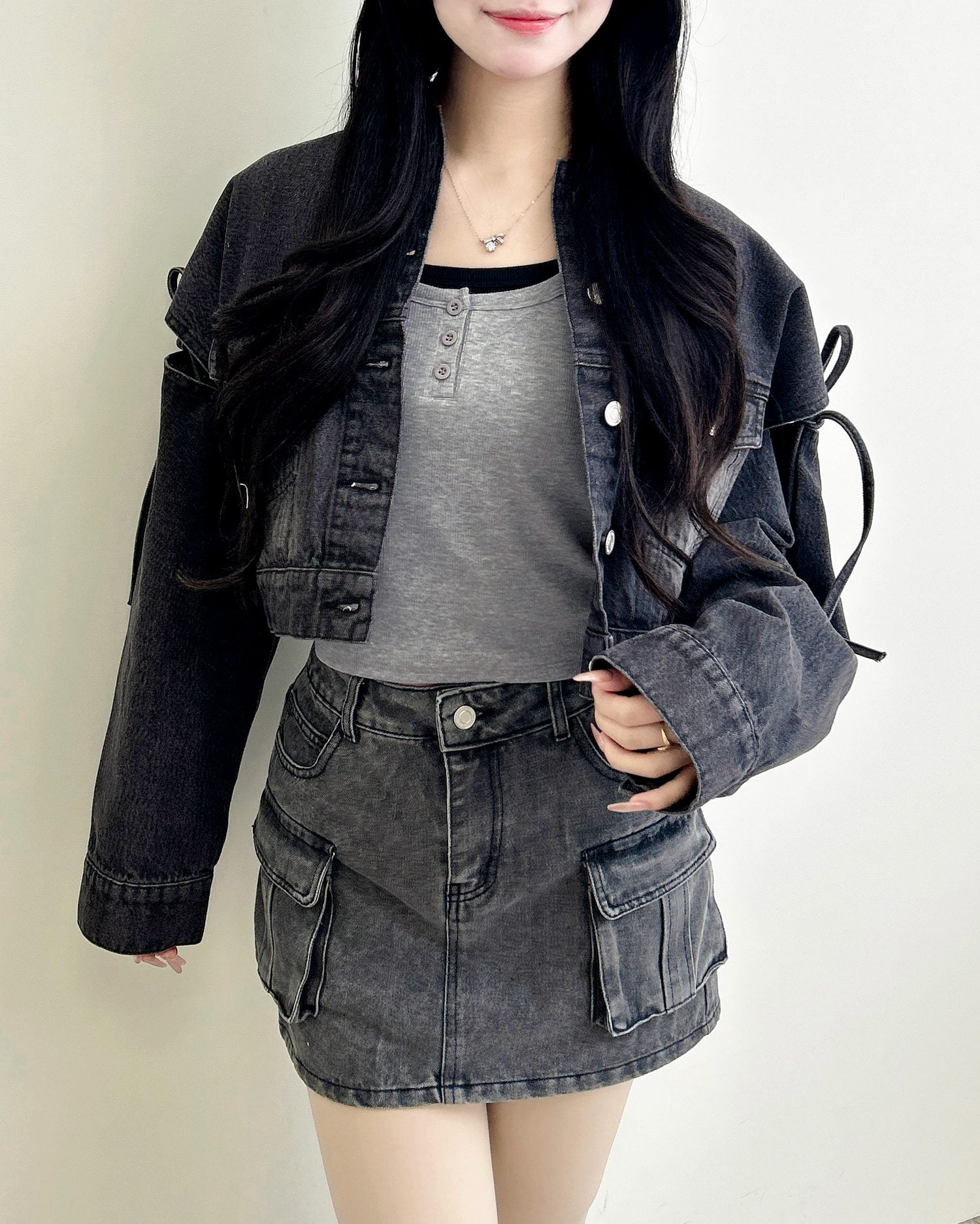 ヴィンテージ感のある加工を施したデニム素材でトレンドコーデが完成します。