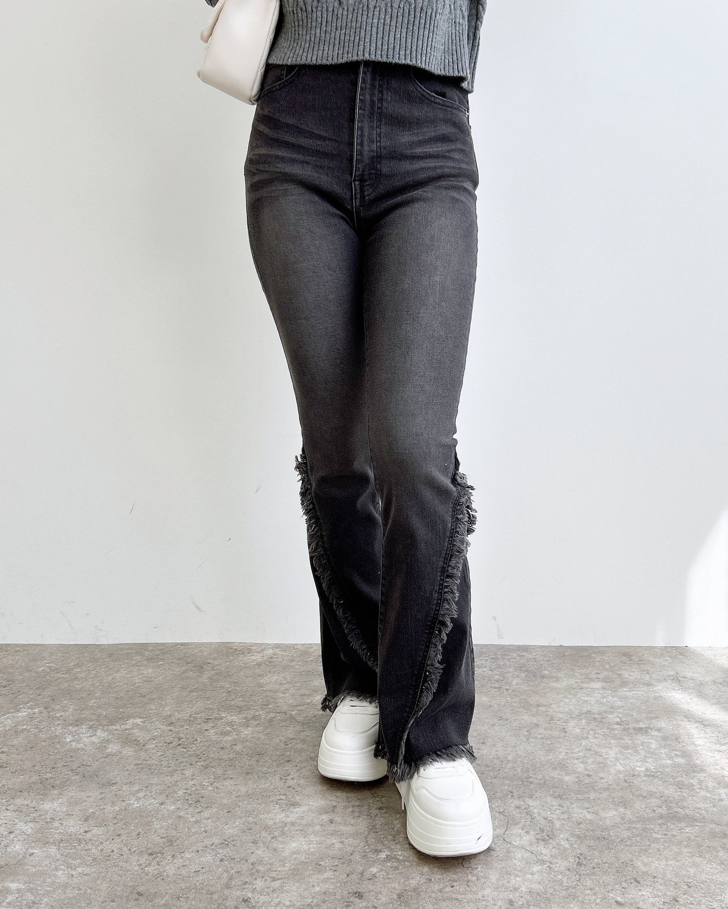 • INGNI(イング) 【S~Mサイズ】フリンジフレアデニムパンツ グレー