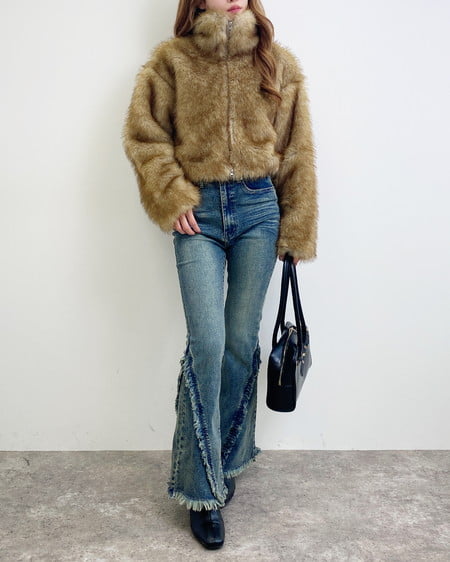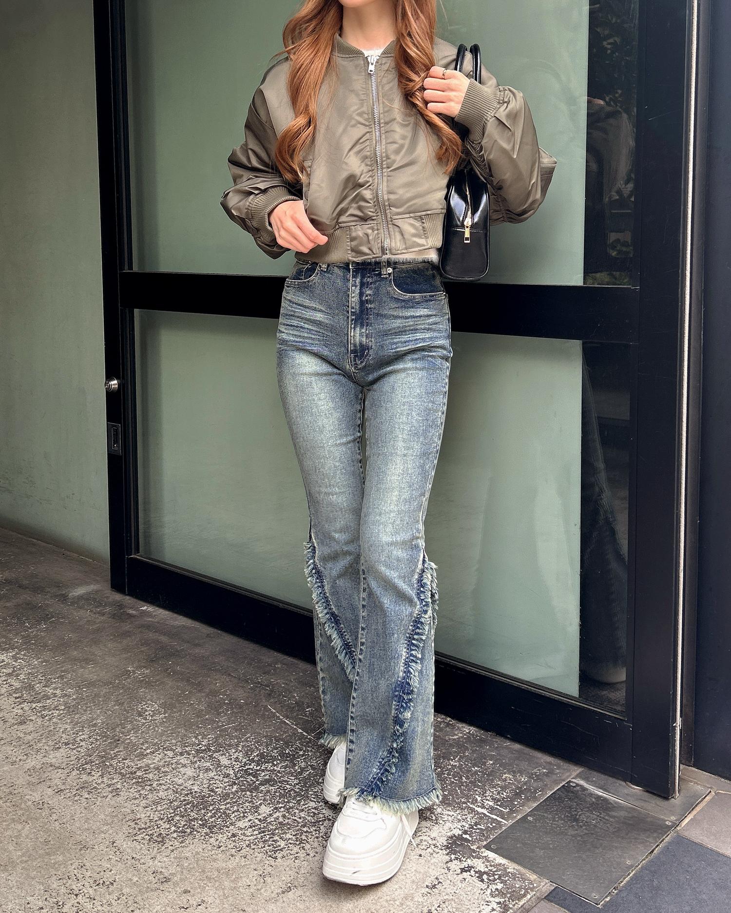 【S~Mサイズ】フリンジフレアデニムパンツ