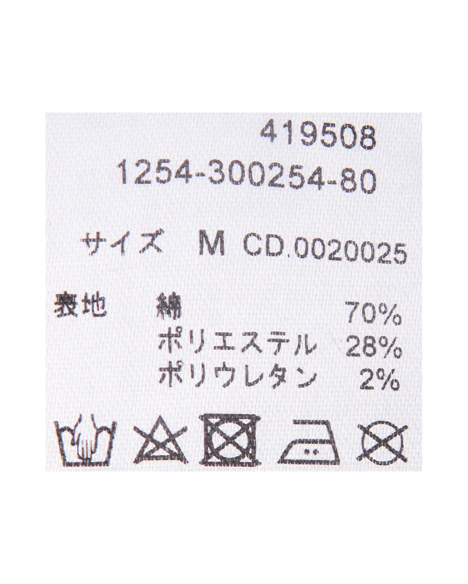 原産国 中国 綿70% ポリエステル28% ポリウレタン2%