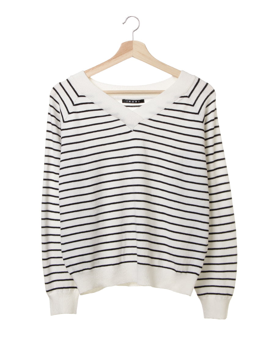 • INGNI(イング) 天竺重ねVネックニット ボーダー