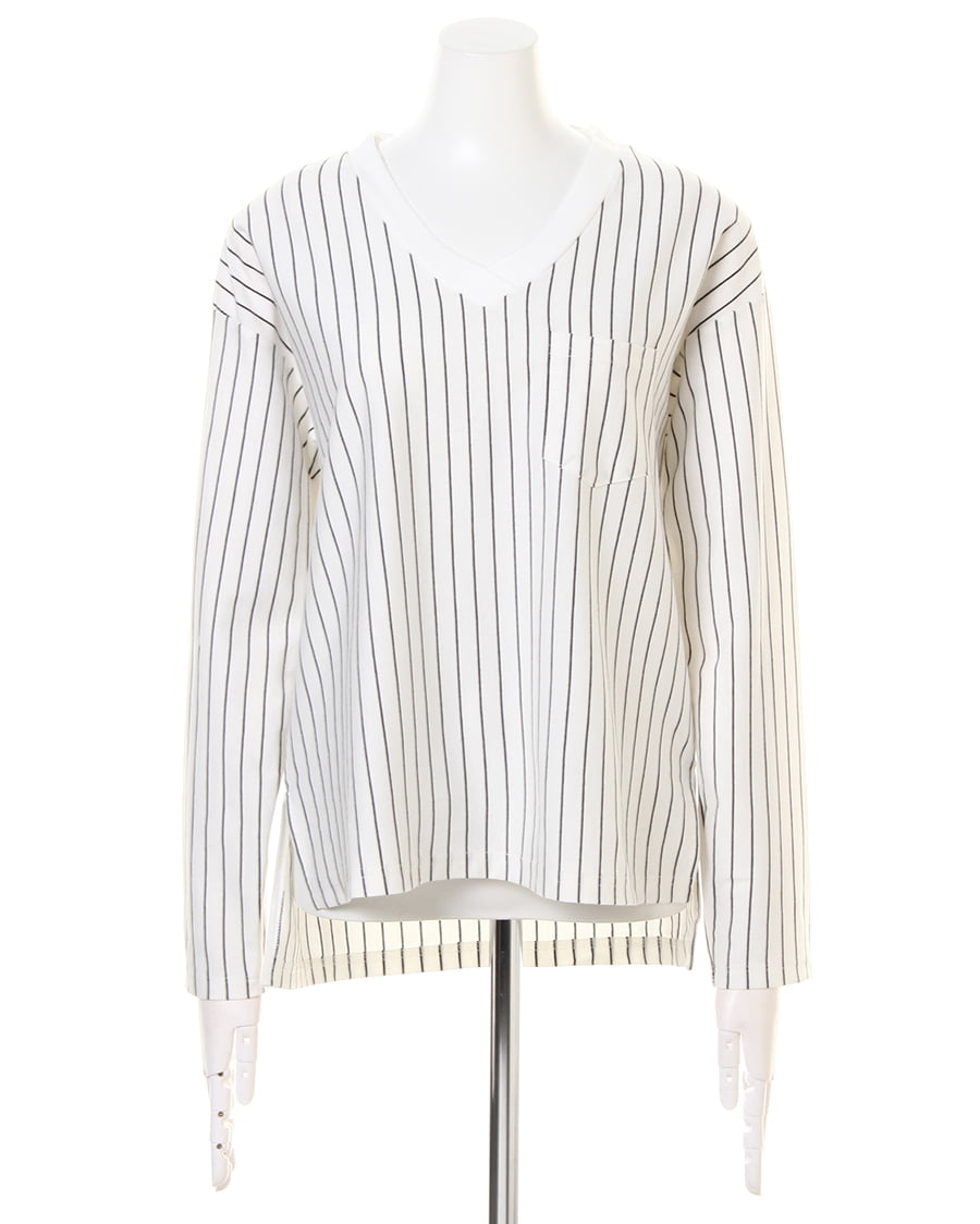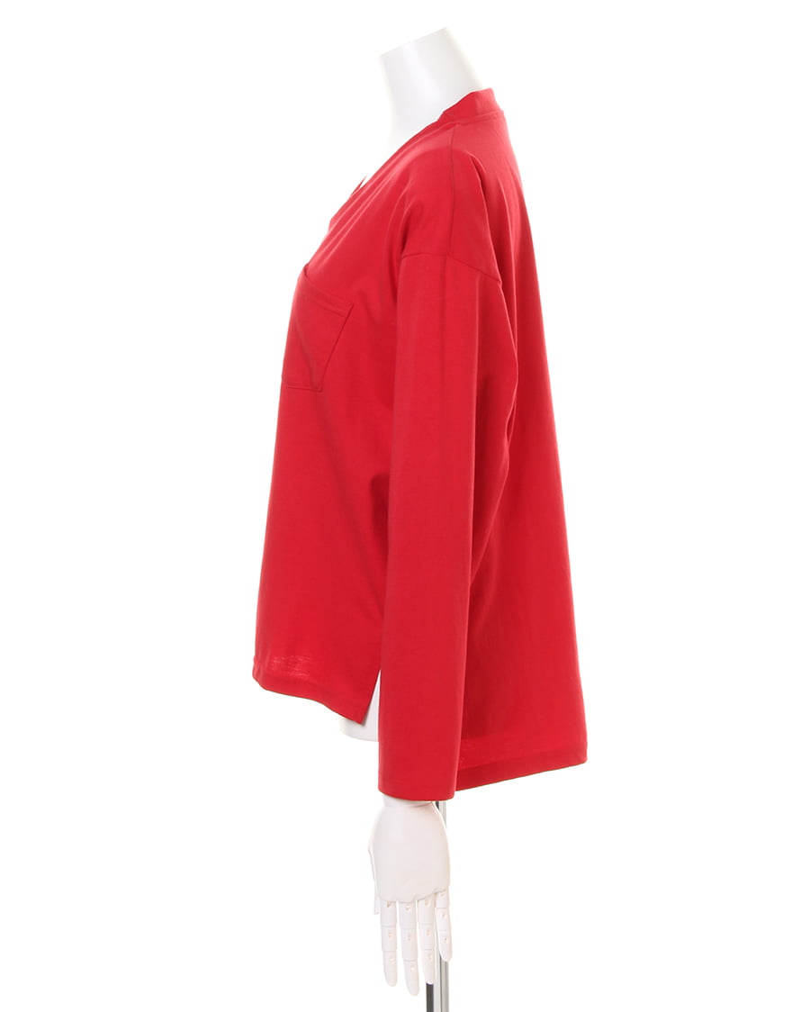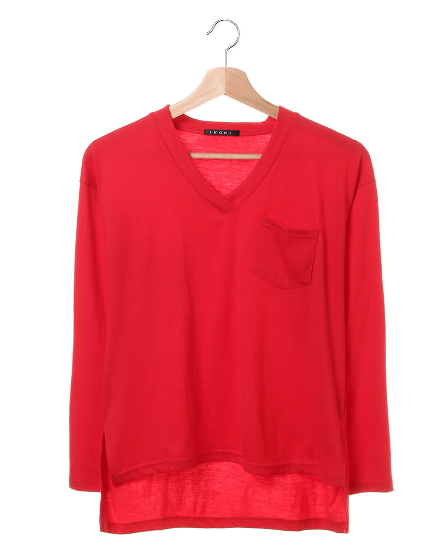 さらりと滑らかな素材で着心地も抜群なロングTシャツは、デイリー使いに重宝するベーシックデザインが魅力的。ハリのある混合生地はしわになりにくくお手入れがしやすい1枚。すっきり開いたVネックがデコルテをきれいにメイク。後ろ下がりのシルエットが女性らしい印象をあおります。サイドに入れたスリットでタックインスタイルも楽チンです。