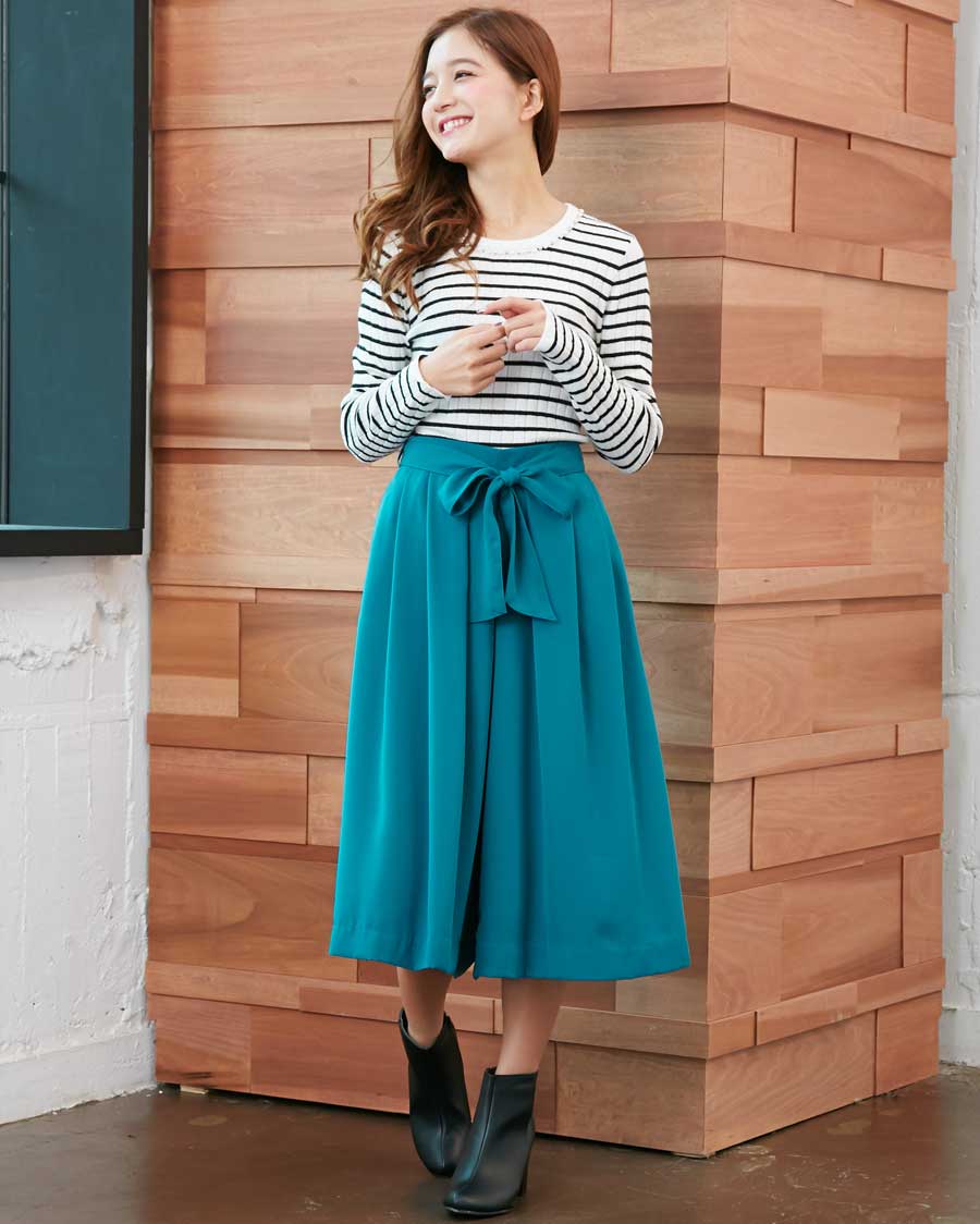 装飾クルーネックプルオーバーとサッシュ付トロミスカーチョのSET☆